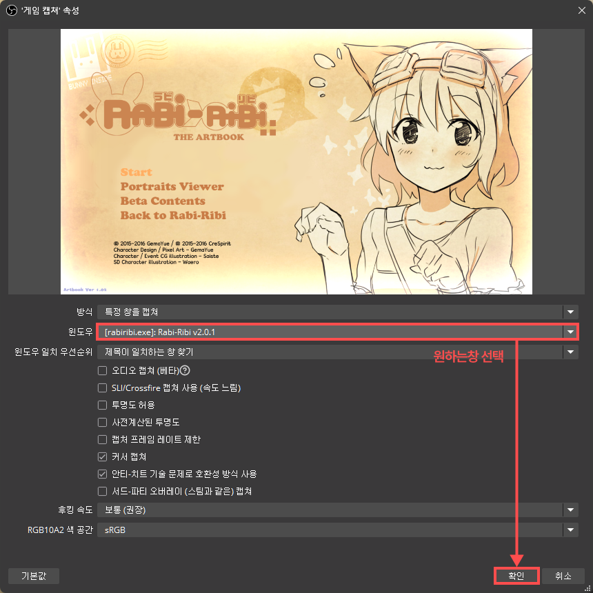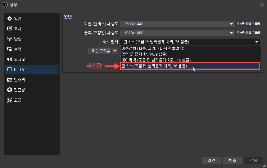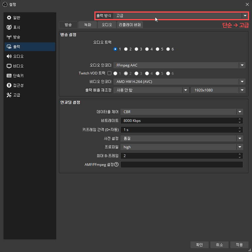 방송이라면 기본적으로 이 설정을 사용하는 걸 권장합니다.
